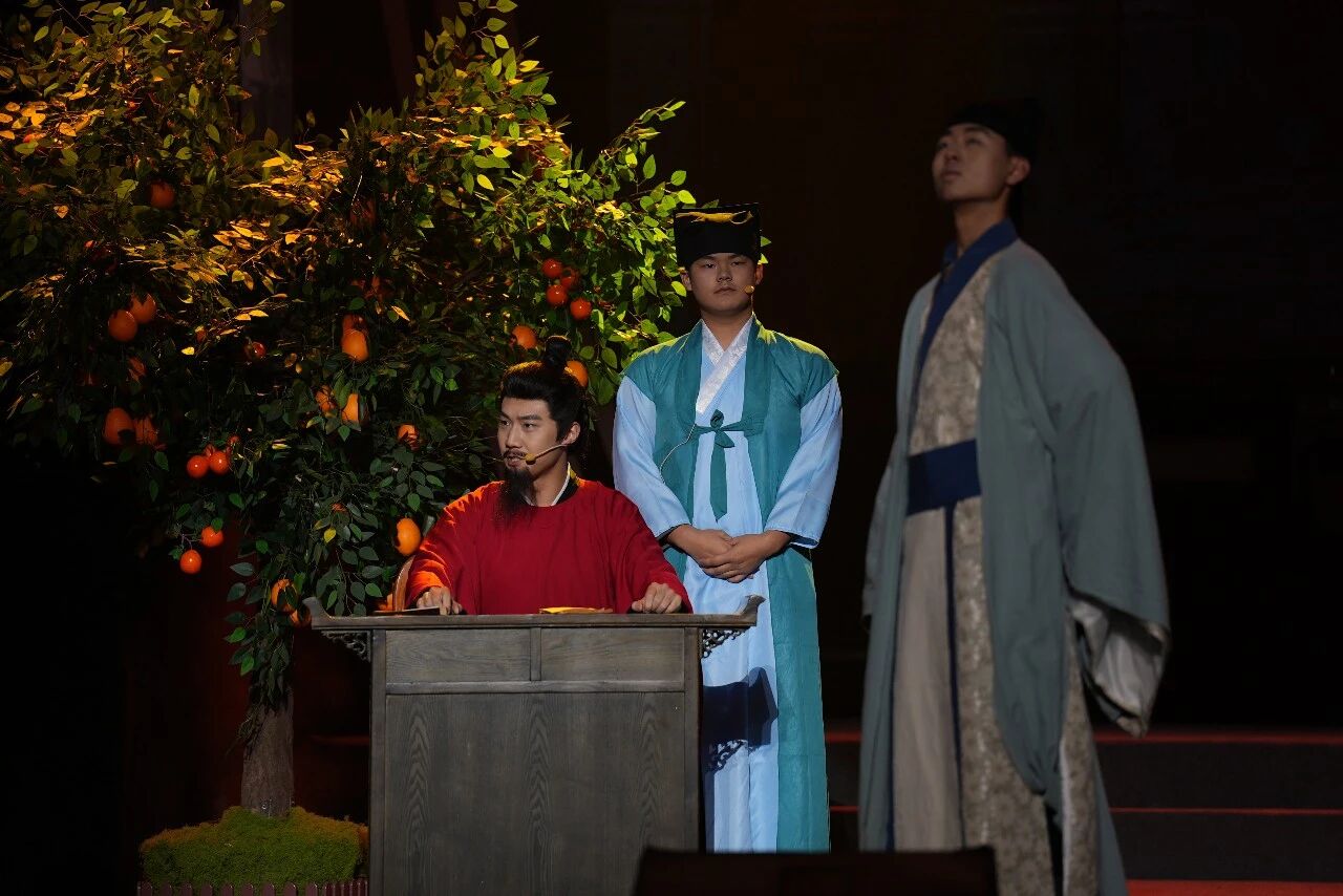 这场极具地方特色的《奉节十二时辰》舞台剧以时辰流转为脉络,通过精彩的情景演绎串联起奉节的历史文脉与乡土温情。开场光影秀《夔门开》气势磅礴,搭配童声朗诵《诗经》选段,勾勒出农耕文明的绵延脉络;《诗魂汇聚》情景表演中,陆游、李白等五位诗人“穿越”登台吟诵经典,与奉节山水相映成趣;《南门旧事》、《诗心传承》等节目则以方言情景剧、古今对话等形式,串联起乡愁记忆与“奉公守节”的精神传承。整场演出穿插多组歌舞与诗人互动,农民诗人们携脐橙、香茶等特产登台献诗,用质朴诗句赞美山水人文、勾勒丰收图景。此外,全国优秀诗人代表联袂展演,千人齐诵艾青《我爱这土地》,对祖国的深情告白震彻全场。活动尾声,全场观众举起手机,万点星光代替了千年江火,全场合唱《歌唱祖国》,新年的脚步也悄然临近,歌声陪伴观众在温馨诗意中跨越旧岁、迎接新程,定格下跨年之夜的美好瞬间。